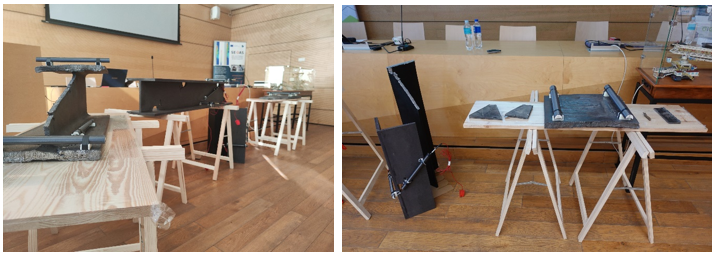 Warsztatom towarzyszyła prezentacja eksponatów, w tym model koparki poddanej demontażowi metodą wybuchową, atrapy ładunków kumulacyjnych i zapalników elektronicznych oraz przykłady cięcia wybuchowego różnych elementów konstrukcji stalowych.