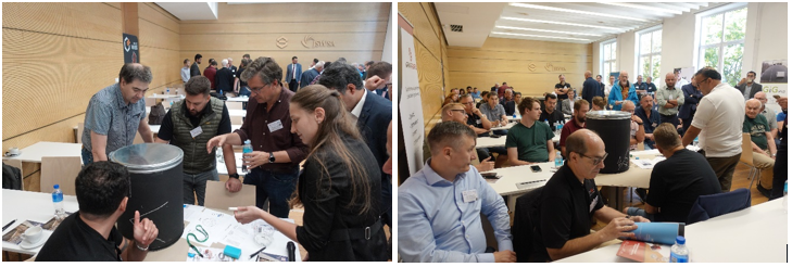 Czym byłyby warsztaty bez zaangażowania uczestników? Po niezwykle interesującym wstępie teoretycznym oraz imponujących case study, nadeszła kolej na zamianę ról. Zadanie praktyczne – zaprojektowanie wyburzenia komina stalowego. Uczestnicy podzielili się na grupy, w których mając do dyspozycji model komina, dane techniczne, dane dla typoszeregu ładunków kumulacyjnych oraz materiały pomocnicze, rozpoczęli pracę nad swoją koncepcją wyburzenia tego obiektu. Zadanie okazało się polem do licznych dyskusji, jednocześnie ponownie pokazując jedną z fascynujących cech wyburzeń: nie ma jednej prawidłowej odpowiedzi na pytanie: „jak to zrobić?”. Każde zaproponowane rozwiązanie okazało się inne, a jednocześnie warte rozważenia.